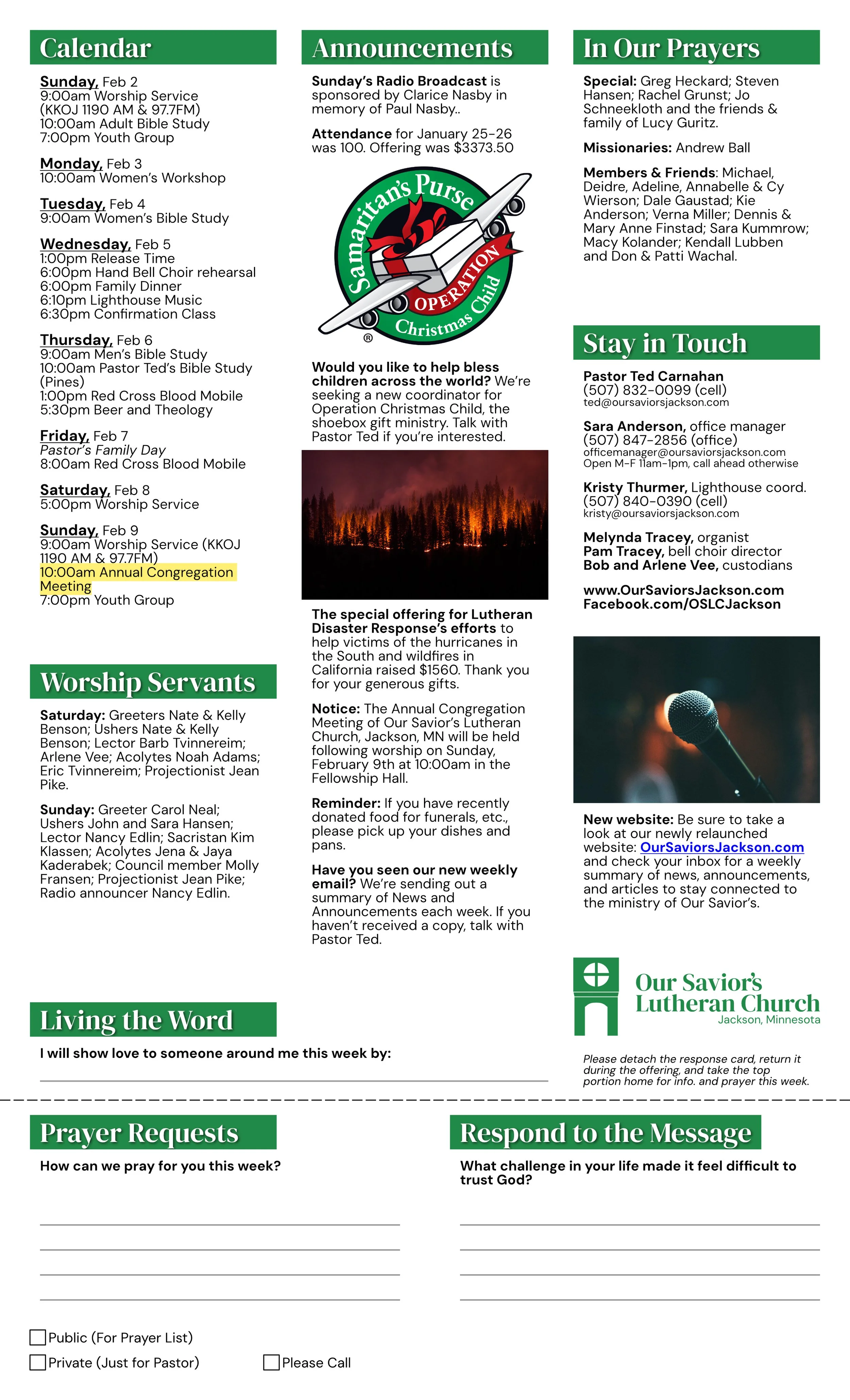 Fourth Sunday after Epiphany, 2025 Bulletin Feb 1 Written By Pastor Ted Carnahan The Fourth Sunday after Epiphany, February 1-2, 2025Bulletin View fullsize View fullsize Pastor Ted Carnahan