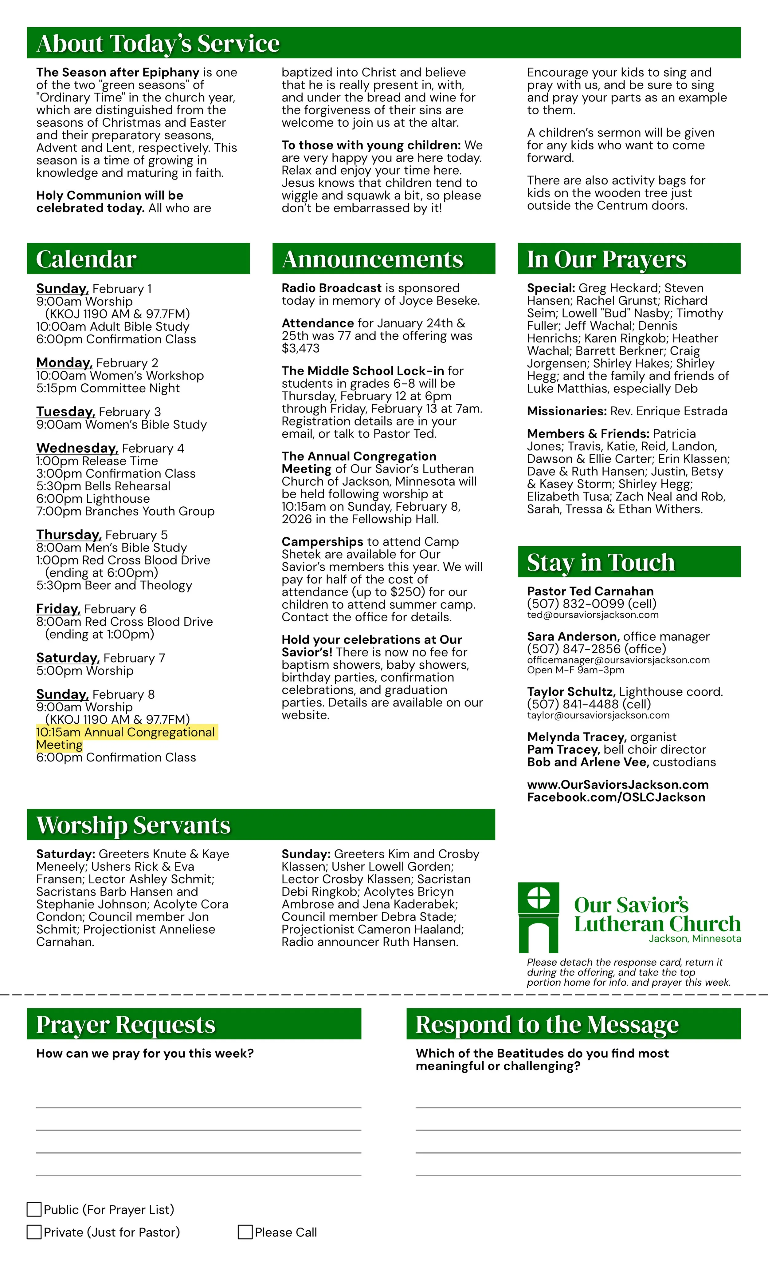 Fourth Sunday after Epiphany Bulletin Jan 31 Written By Pastor Ted Carnahan Bulletin for the Fourth Sunday after Epiphany, January 31-February 1, 2026. Pastor Ted Carnahan