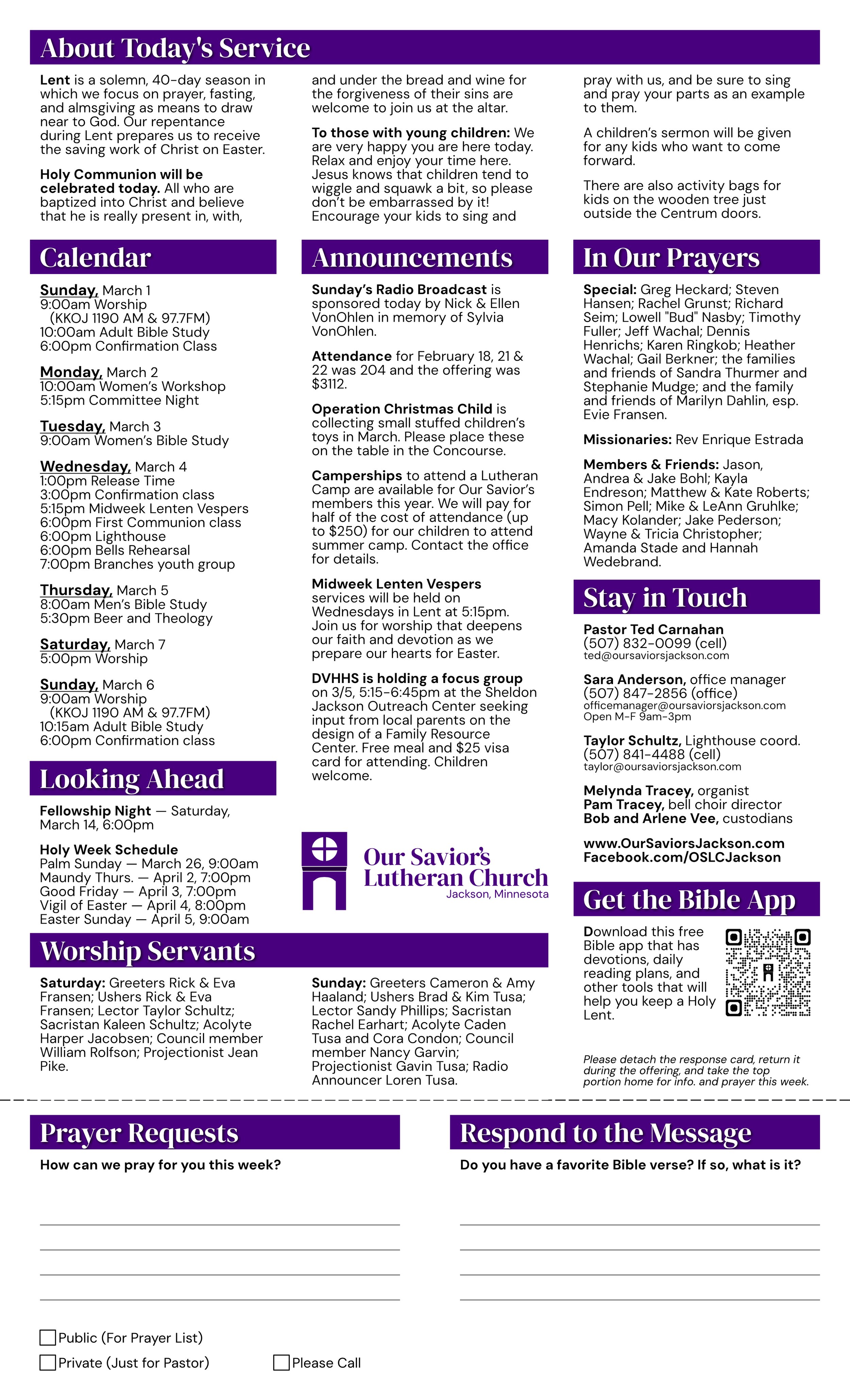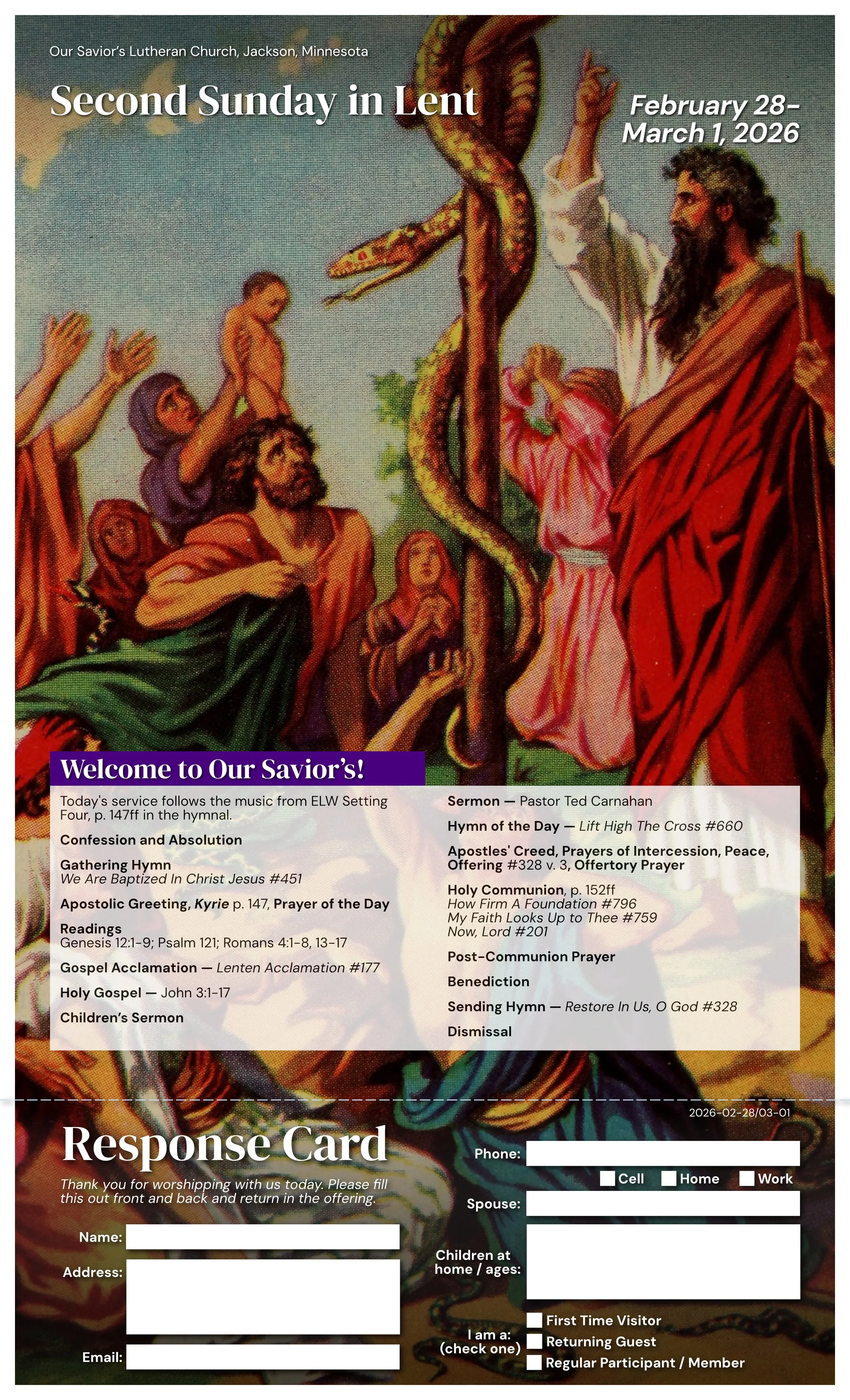 Second Sunday in Lent Bulletin Feb 28 Written By Pastor Ted Carnahan Bulletin for the Second Sunday in Lent, February 28 - March 1, 2026. Pastor Ted Carnahan